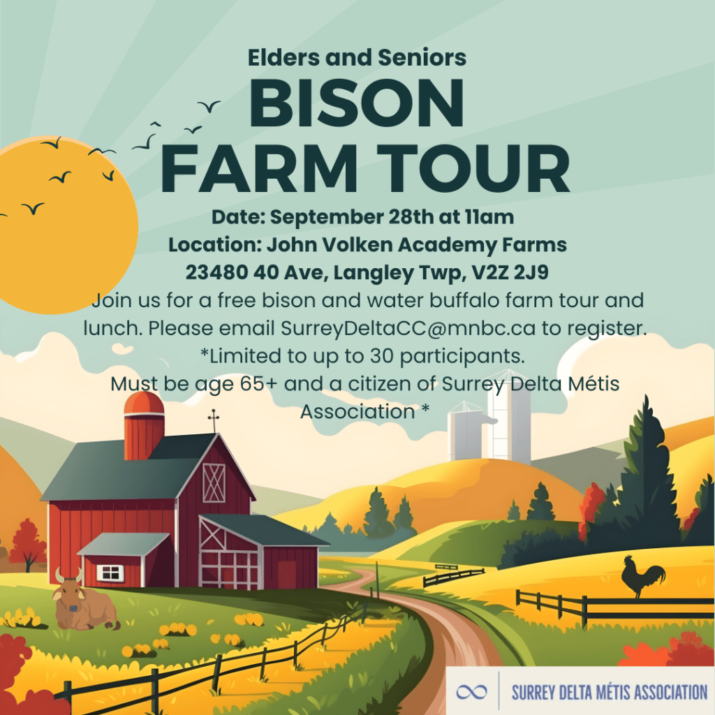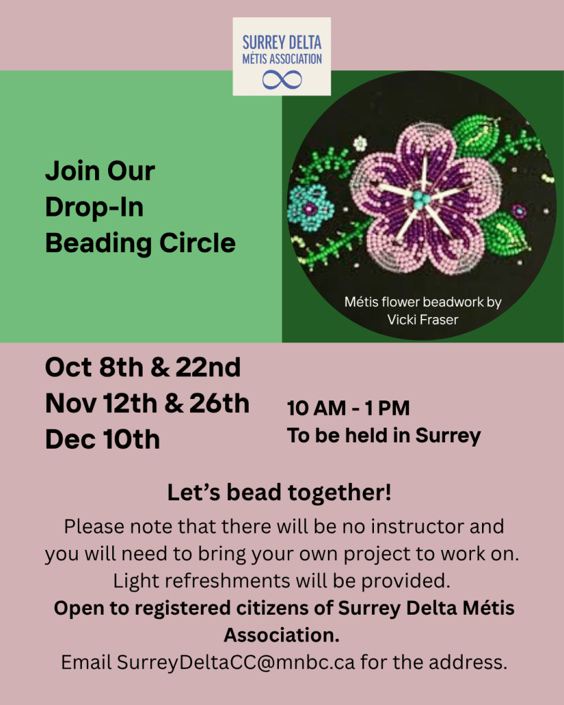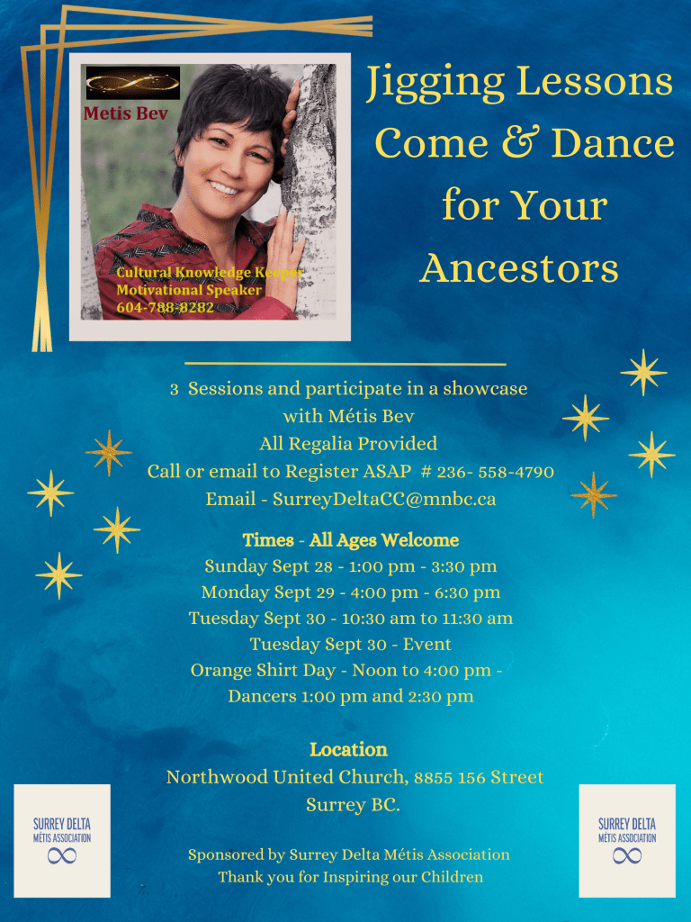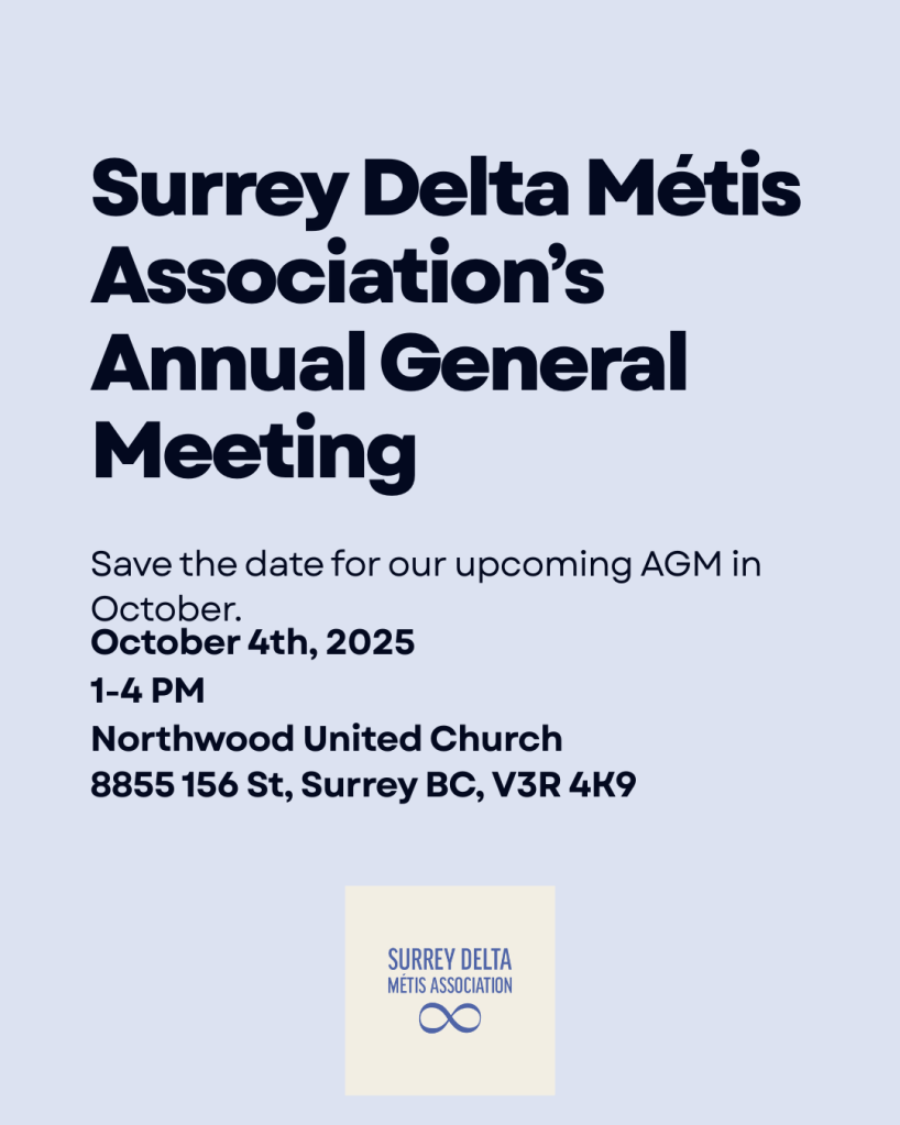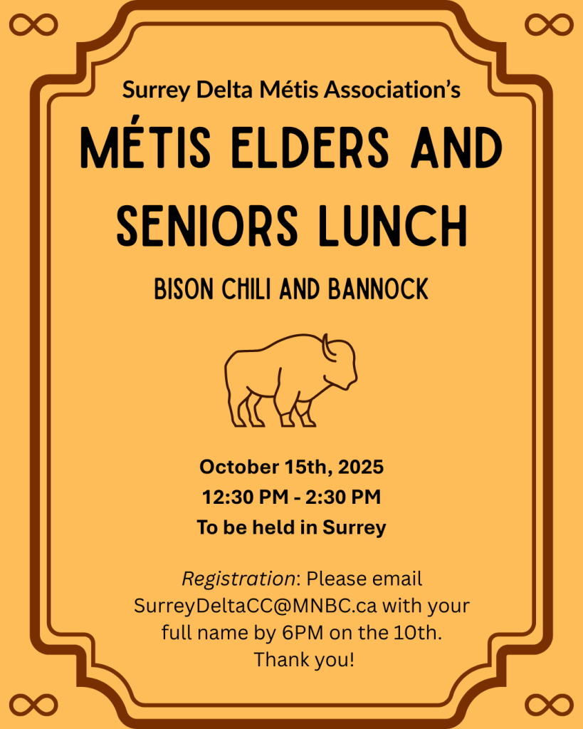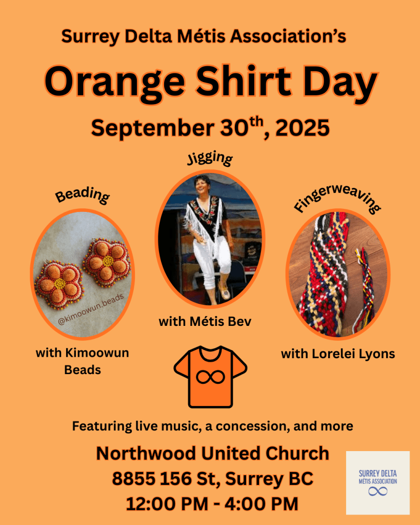 Join Surrey Delta Métis Association on Tuesday, Sept 30, 12–4 PM at Northwood United Church (Surrey, BC).