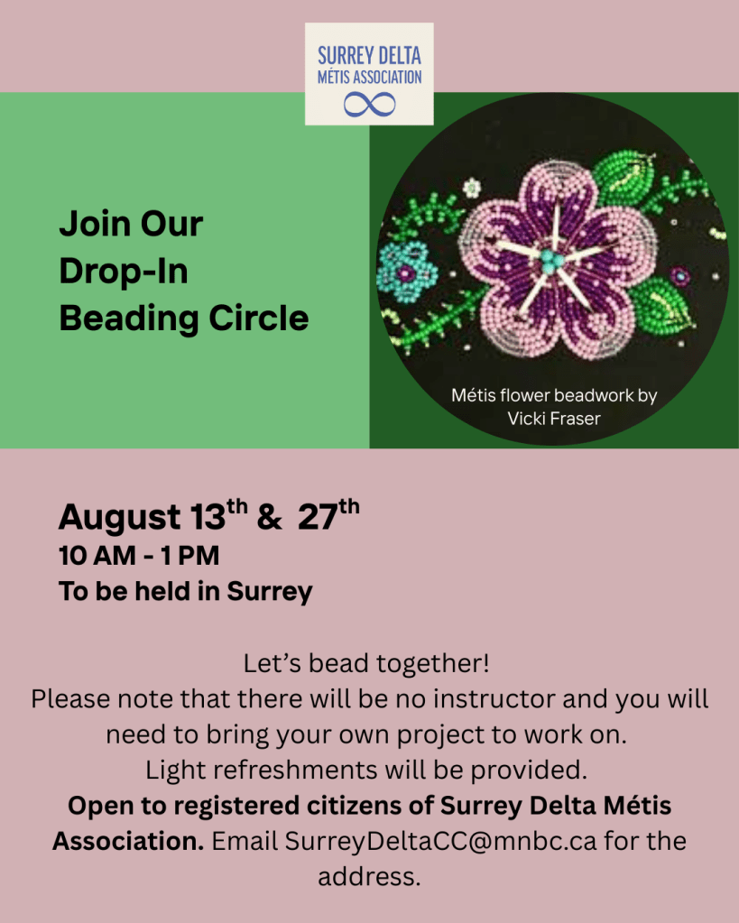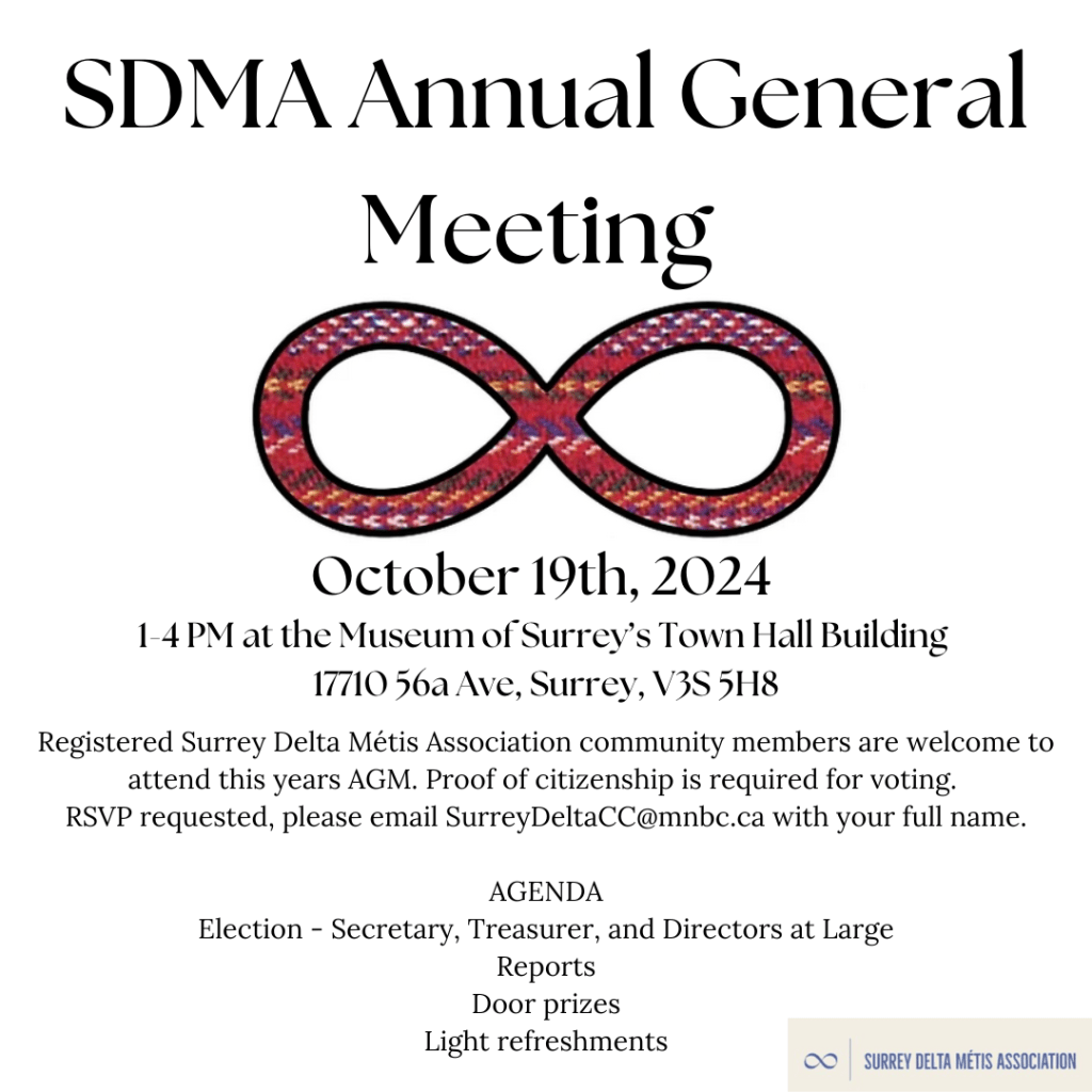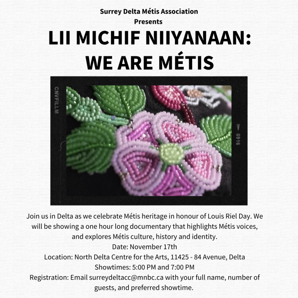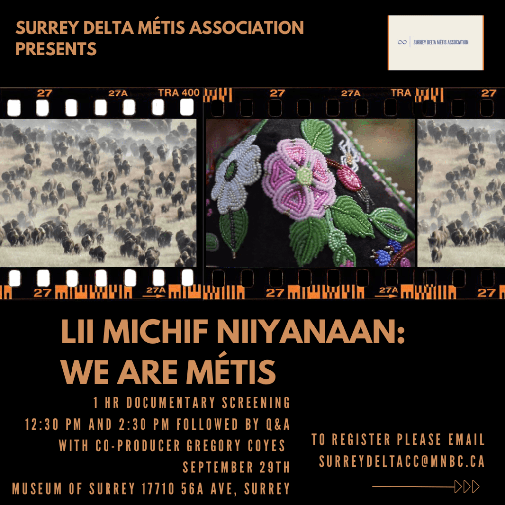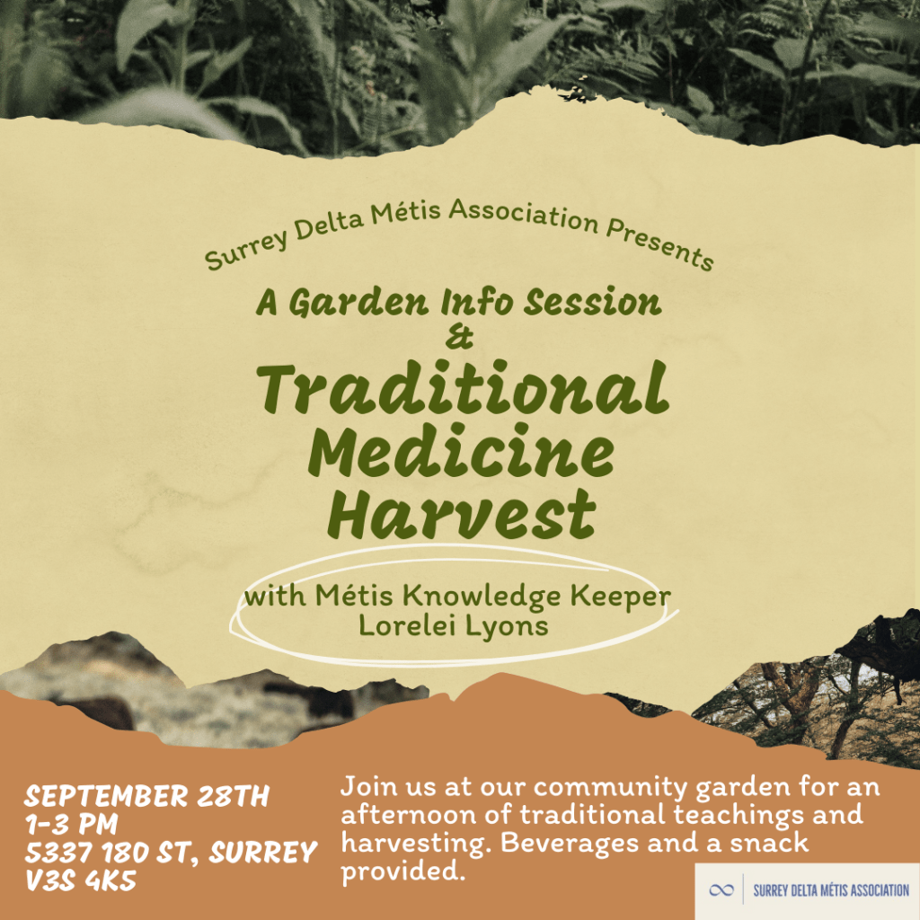 Join Surrey Delta Métis Association on Tuesday, Sept 30, 12–4 PM at Northwood United Church (Surrey, BC).