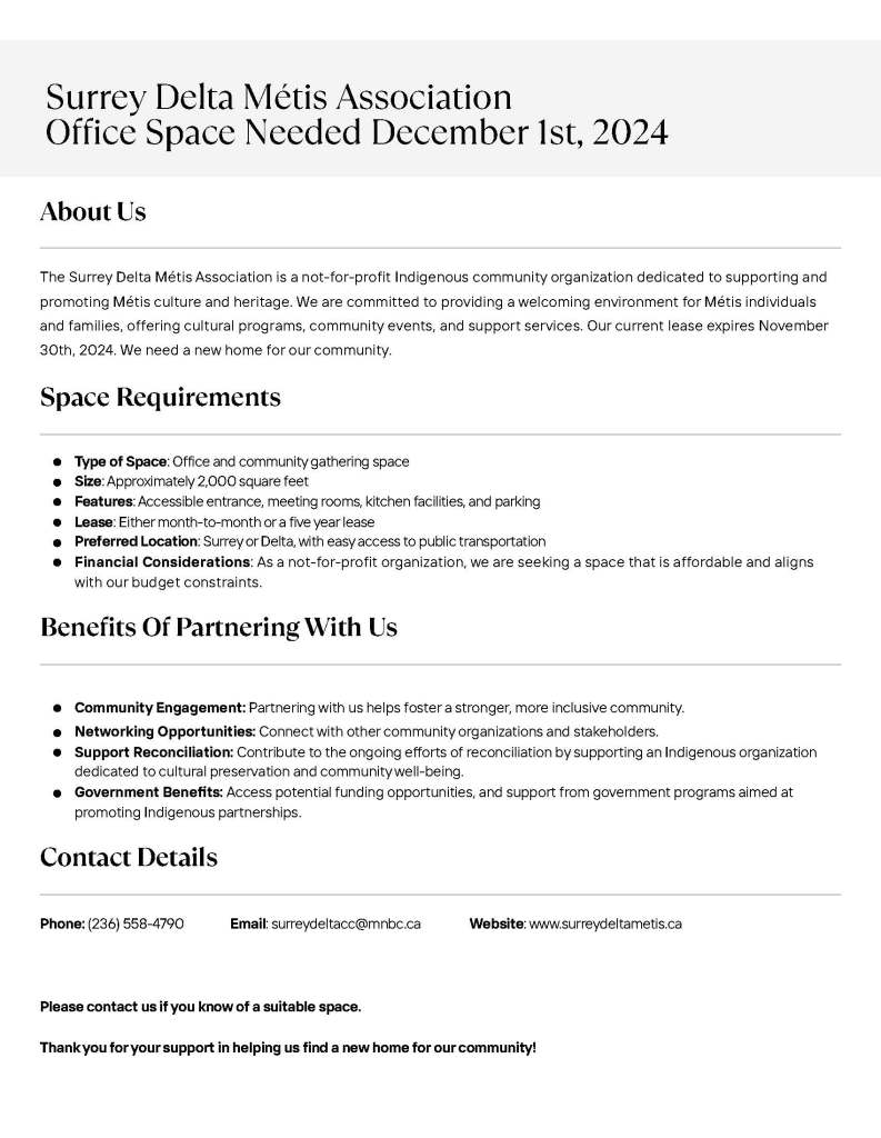 Location: Surrey Delta Métis Office